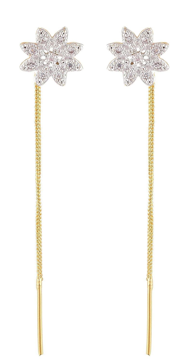 Buy Skn Gold Silver American Diamond Needle Thread Sui Dhaga Earrings For Women Girls Skn 1259b At Amazon In