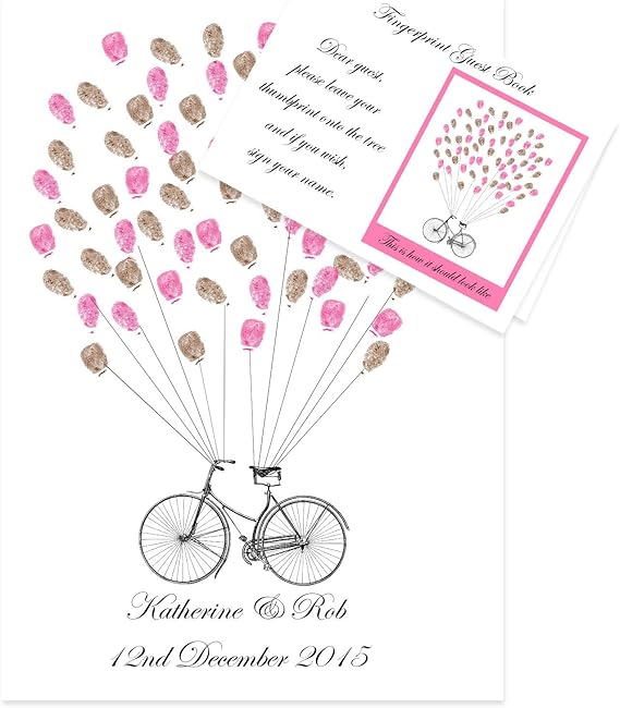 Bike Guest Book Personalised Wedding Christening Thumbprint Fingerprint A3 With Inks Choice Brown And Pink Amazon Co Uk Kitchen Home