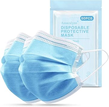 50pcs Disposable Face Mask With Upgraded Elastic Ear Hooks 3 Layer Safety Mask For Dust Splashing Liquid Suitable For Adults Teenagers Men Women Indoor Outdoor Blue Amazon Com