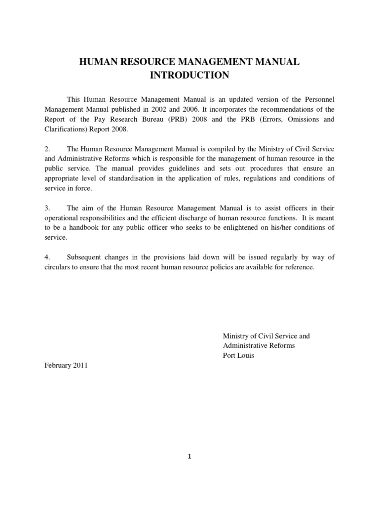 Human Resource Management Manual Introduction Pdf Free Download