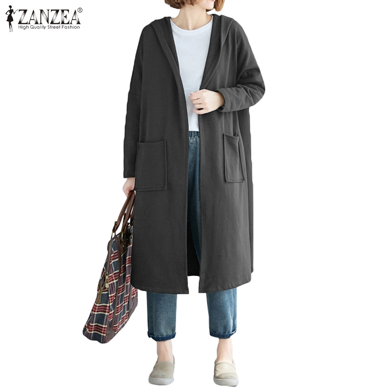 Juta Women Hooded Open Front Casual Plus Size Long Cardigan Shopee Singapore