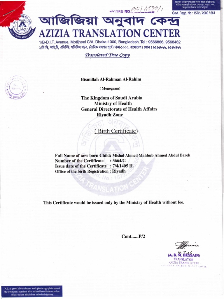 Birth Certificate English Translation Middle East Saudi Arabia