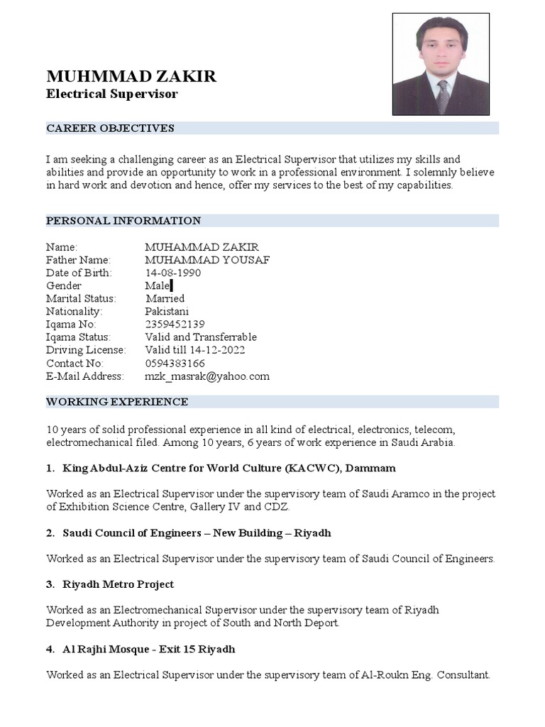 Zakir Cv 1 Riyadh Saudi Arabia
